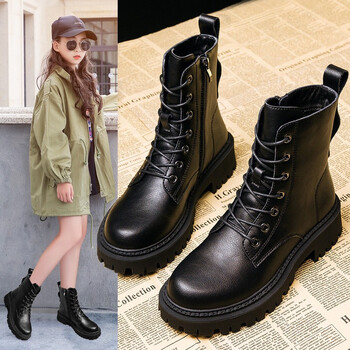 童鞋儿童马丁靴男童靴子加绒雪地靴秋冬中大童皮靴真皮短靴英伦风复古工装鞋3 12岁男孩鞋子卡其色 厚绒